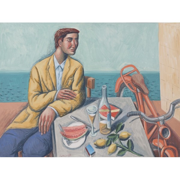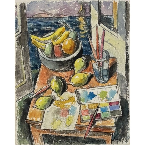 ΤΙΤΛΟΣ: ΣΥΝΘΕΣΗ ΥΛΙΚΟ: ΑΚΟΥΑΡΕΛΑ ΔΙΑΣΤΑΣΕΙΣ: 30X23 ΕΚ ΠΛΗΡΟΦΟΡΙΕΣ: ΥΠΟΓΕΓΡΑΜΜΕΝΟ ΚΑΙ ΧΡΟΝΟΛΟΓΗΜΕΝΟ (76) ΚΑΤΩ ΔΕΞΙΑ . ΤΟ ΕΡΓΟ ΦΕΡΕΙ ΙΔΙΟΧΕΙΡΗ ΣΗΜΕΙΩΣΗ ΑΠΟ ΤΟΝ ΚΑΛΛΙΤΕΧΝΗ ΣΤΟ ΚΑΤΩ ΜΕΡΟΣ " ΧΡΟΝΙΑ ΠΟΛΛΑ ΕΥΤΥΧΙΣΜΕΝΟ ΤΟ 76". (ΤΟ ΕΡΓΟ ΣΥΝΟΔΕΥΕΤΑΙ ΑΠΟ ΚΟΡΝΙΖΑ)