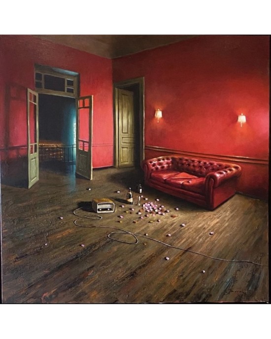 ΕΣΩΤΕΡΙΚΟ ΔΩΜΑΤΙΟΥ (4)ΕΛΑΟΓΡΑΦΙΑ ΣΕ ΜΟΥΣΑΜΑ90χ90 ΕΚ.ΥΠΟΓΕΓΡΑΜΜΕΝΟ ΣΤΟ ΚΑΤΩ ΜΕΡΟΣ