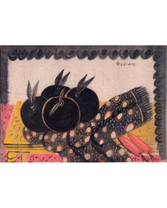 ΝΕΚΡΗ ΦΥΣΗ ΜΕ ΚΑΡΟΤΑ ΚΑΙ ΜΗΛΑ ΕΛΑΙΟΓΡΑΦΙΑ ΣΕ ΜΟΥΣΑΜΑ 34Χ50 ΕΚ. ΥΠΟΓΕΓΡΑΜΜΕΝΟ ΣΤΟ ΠΑΝΩ ΜΕΡΟΣ