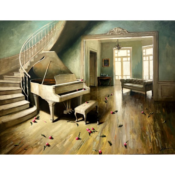 ΤΙΤΛΟΣ: ΕΣΩΤΕΡΙΚΟ ΔΩΜΑΤΙΟΥ ΜΕ ΠΙΑΝΟ ΥΛΙΚΟ: ΕΛΑΙΟΓΡΑΦΙΑ ΣΕ ΚΑΜΒΑ ΔΙΑΣΤΑΣΕΙΣ: 100Χ130 εκ. ΠΛΗΡΟΦΟΡΙΕΣ: ΥΠΟΓΕΓΡΑΜΜΕΝΟ ΣΤΟ ΚΑΤΩ ΜΕΡΟΣ (ΤΟ ΕΡΓΟ ΣΥΝΟΔΕΥΕΤΑΙ ΑΠΟ ΚΟΡΝΙΖΑ)