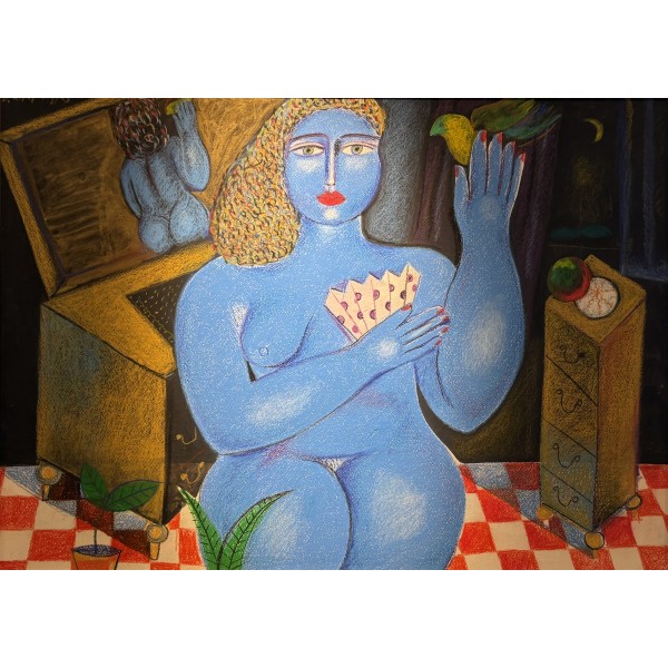 ΒΑΣΙΛΗΣ ΣΠΕΡΑΝΤΖΑΣ - (1938 - ) - ΜΠΛΕ ΓΥΝΑΙΚΑ ΣΤΟ ΔΩΜΑΤΙΟ